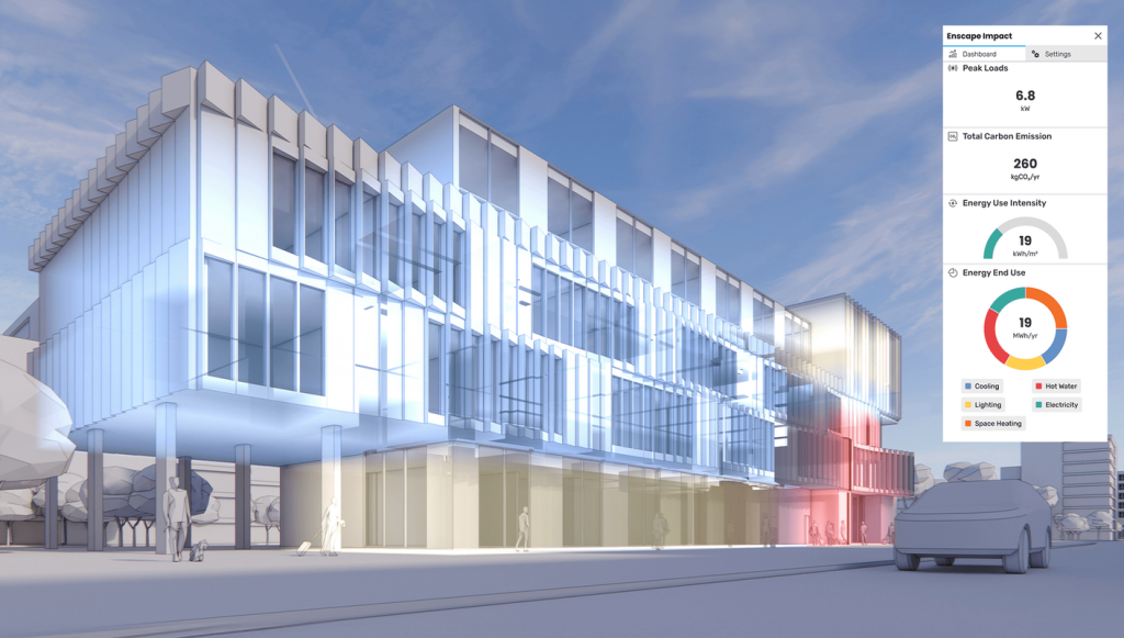 与传统的独立建筑分析工具或缺乏集成分析功能的 CAD 软件不同,Enscape Impact 让您能够基于数据快速做出决策,在提升建筑美观性与功能性的同时,也可以兼顾成本效益与能源效率。